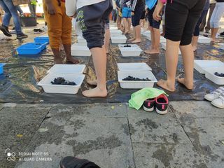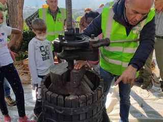 Al mattino, alle ore 9.30, la giornata è iniziata con la vendemmia e la pigiatura nella vigna didattica, seguite da un pranzo a buffet, alle ore 12.00, offerto dai ragazzi dell'Istituto Alberghiero.