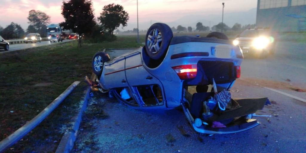 Coinvolta un'unica automobile, uscita fuori strada e ribaltatasi sulla SP564, in regione Colombero, nei pressi del locale "Jocasta". Ferito il conducente, un uomo.