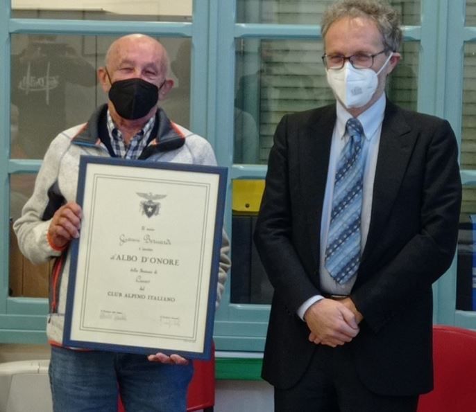 Durante la serata sono stati premiati i soci con 25, 50 e 60 anni di anzianità; un premio particolare è andato a Gianni Bernardi che è stato nominato Socio Benemerito della Sezione. Bernardi è un protagonista dell’alpinismo cuneese: apertore di numerose vie alpinistiche, fondatore del Gruppo “Cit ma bon” nel 1962, promotore della Scuola di Sci alpinismo e anima del Soccorso Alpino, che riorganizzò totalmente negli anni ’60, operandovi per moltissimi anni come delegato e volontario.