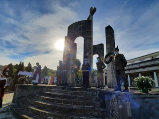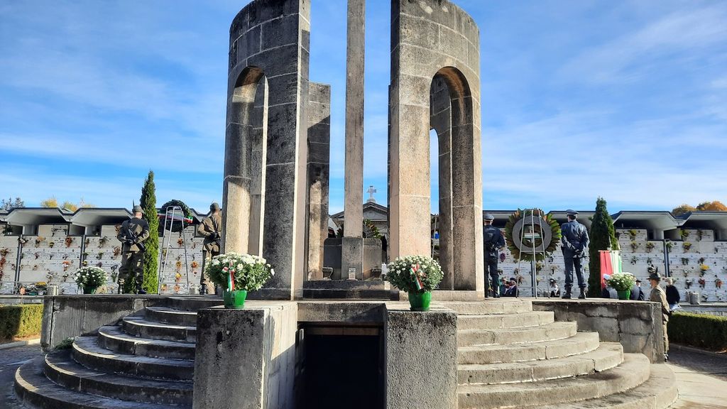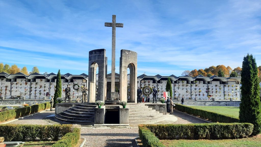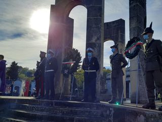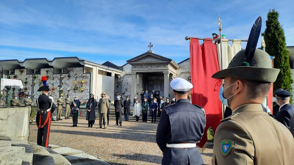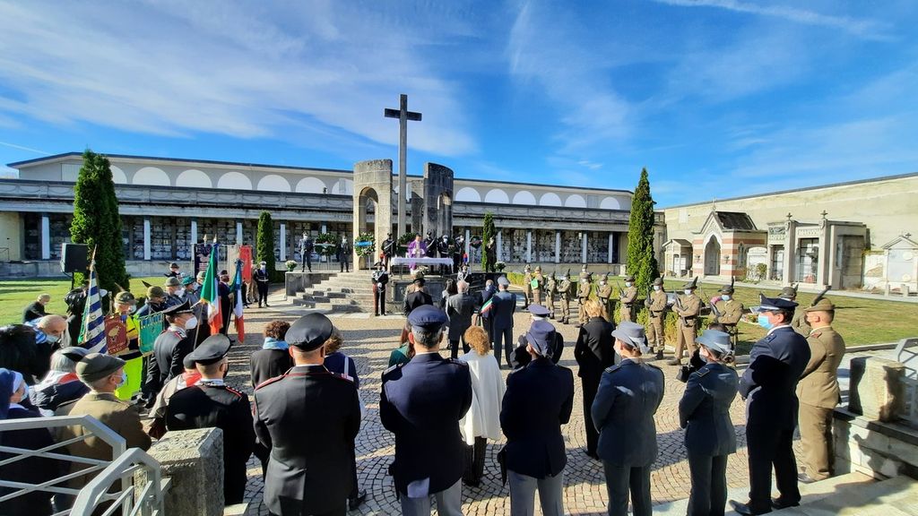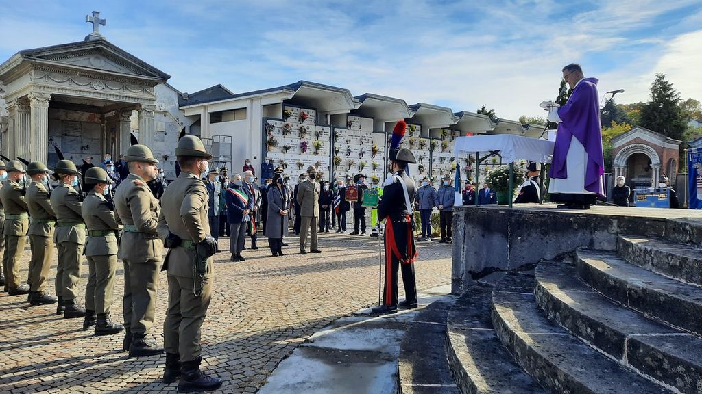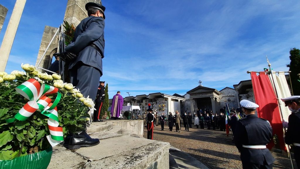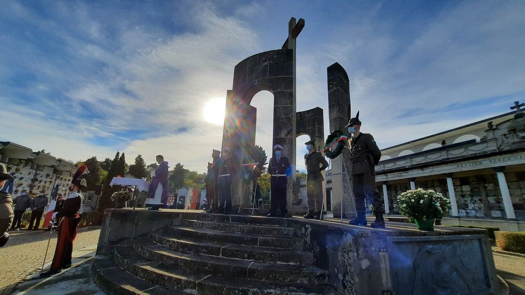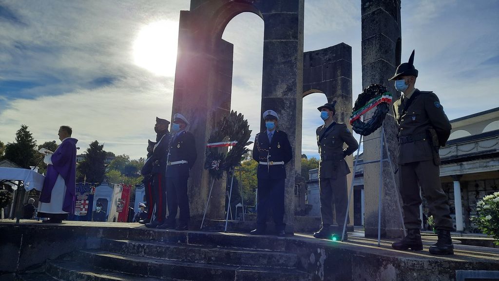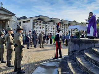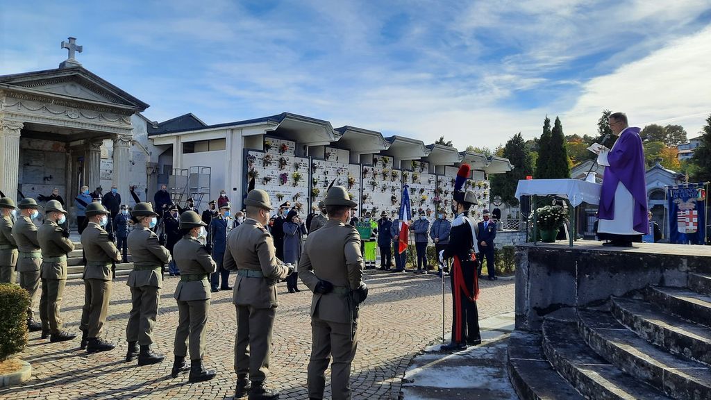 A celebrare la santa messa presso l'Ossario dei Caduti Militari Don Mauro Biodo. Nell'omelia ha ricordato lo strazio e il dolore dei familiari che solo l'anno scorso, durante il lockdown, non hanno potuto dare un saluto degno ai propri cari defunti: “La Provvidenza vuole che oggi celebriamo questa messa in questo luogo dove c'è una croce senza crocifisso. Perché Gesù non è Dio della morte ma della vita”.
