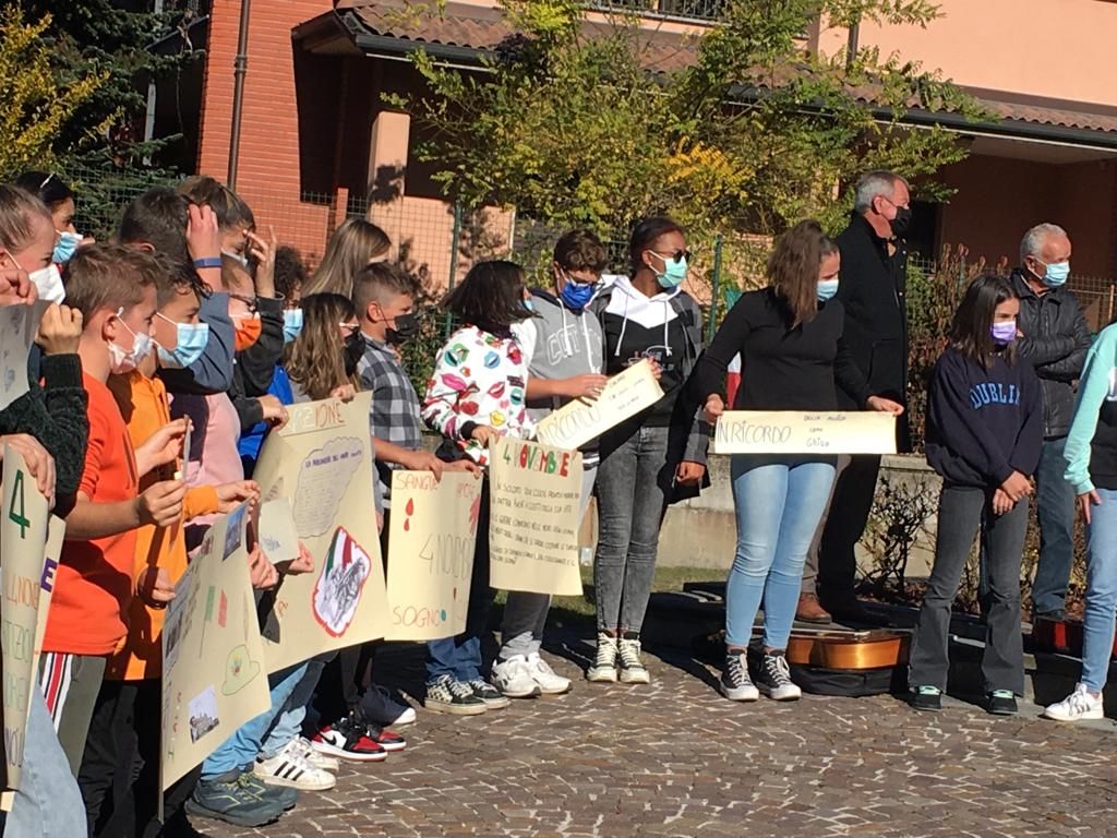 A seguire gli alunni delle scuole primaria e secondaria hanno intonato l'Inno d'Italia e condiviso con i presenti pensieri e poesie sul valore della pace, invitando al rispetto per tutti gli esseri viventi e anche a una maggiore tutela per il pianeta terra.