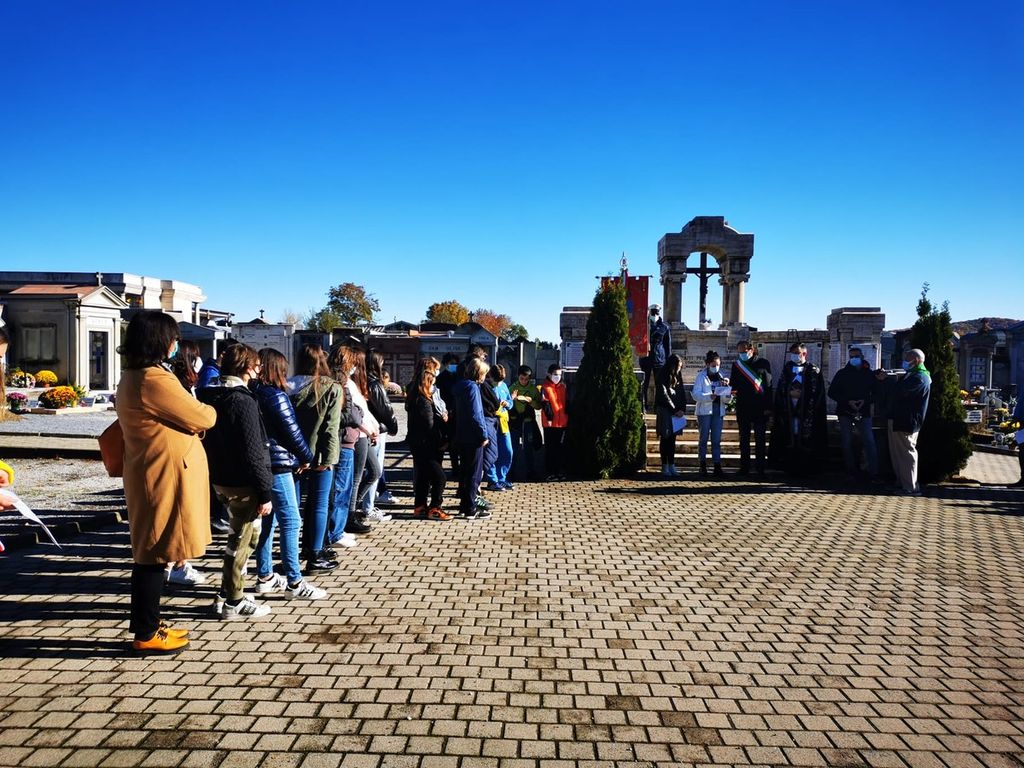Erano presenti il sindaco Gian Paolo Beretta con la Giunta, le associazioni del territorio e due sezioni dell'istituto comprensivo Grandis accompagnate dalla dirigente scolastica Luciana Ortu e dalle insegnanti Antonella Giraudo e Sonia Quaranta. I ragazzi si sono alternati nella lettura di lettere inviate dai soldati in trincea alle loro famiglie e da testi scritti da loro su ciò che credono "essere valore".