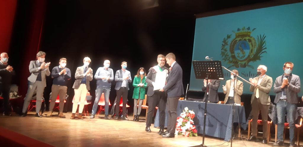 Sono state consegnate dal sindaco le pergamene della cittadinanza onoraria saluzzese a Michele Pianetta dell’Anci regionale, al nuovo capitano della Compagnia dei Carabinieri Davide Basso e a Chiaffredo Maurino dell’Associazione Nazionale Famiglie dei Caduti e Dispersi in Guerra.