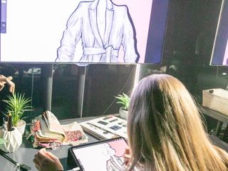 In quattro punti dell’area sono stati infatti allestiti dei micro set, dove era possibile vedere come nasce un abito, dal disegno sulla carta alla trasposizione su computer, dalla confezione al trucco dell’indossatrice.