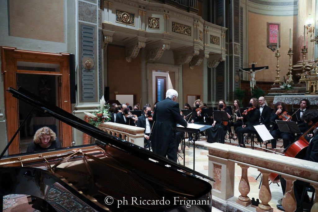 L’orchestra sabato al Santuario Beata Vergine della Rocca di Cento è salita sul palcoscenico insieme a Sofya Gulyac, pianista di fama internazionale prima donna ad essere insignita, nel settembre 2009, del primo premio e Medaglia d’Oro Principessa Mary al XVI Concorso pianistico internazionale di Leeds, vincitrice di moltissimi premi tra i quali il celeberrimo Busoni, elogiata dal Washington Post per la sua “incredibile precisione e la squisita delicatezza del suono”.