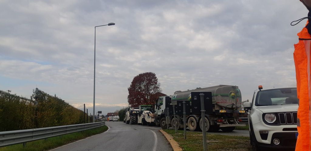 Il traffico della Statale proveniente da Pinerolo viene deviato sulla Tangenziale Est di Saluzzo in corrispondenza della rotatoria.