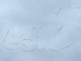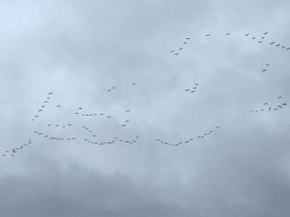 Gli uccelli, con il loro inconfondibile canto, solitamente volano ad altezze più elevate, ma le nubi di questi giorni li hanno portati ad essere visibili da molti. Oltre che udibili, visto il loro inconfondibile 'kru' che dà il nome a questi bellissimi volatili.