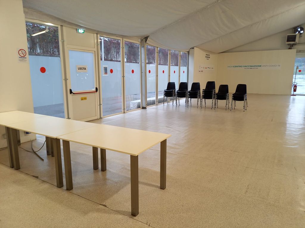 L'interno della struttura, nella mattinata di oggi (giovedì 25 novembre), appare vuoto: i tavoli sono spogli, le sedie di plastica su cui le persone attendevano - dopo la vaccinazione - gli ormai classici 15 minuti prima di uscire dalla tendostruttura sono impilate l'una sull'altra e pronte per essere portate via. Si sta procedendo alle operazioni di pulizia interne.