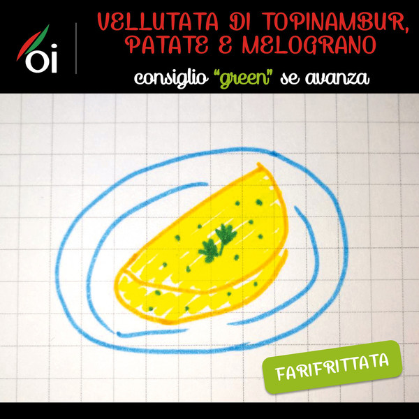 VELLUTATA DI TOPINAMBUR, un primo piatto saporito ma veramente leggero e molto digeribile, oltre a valere un pieno di ferro, che viene assorbito al meglio grazie alla presenza dei chicchi di melograno, ricchi di vitamina C.