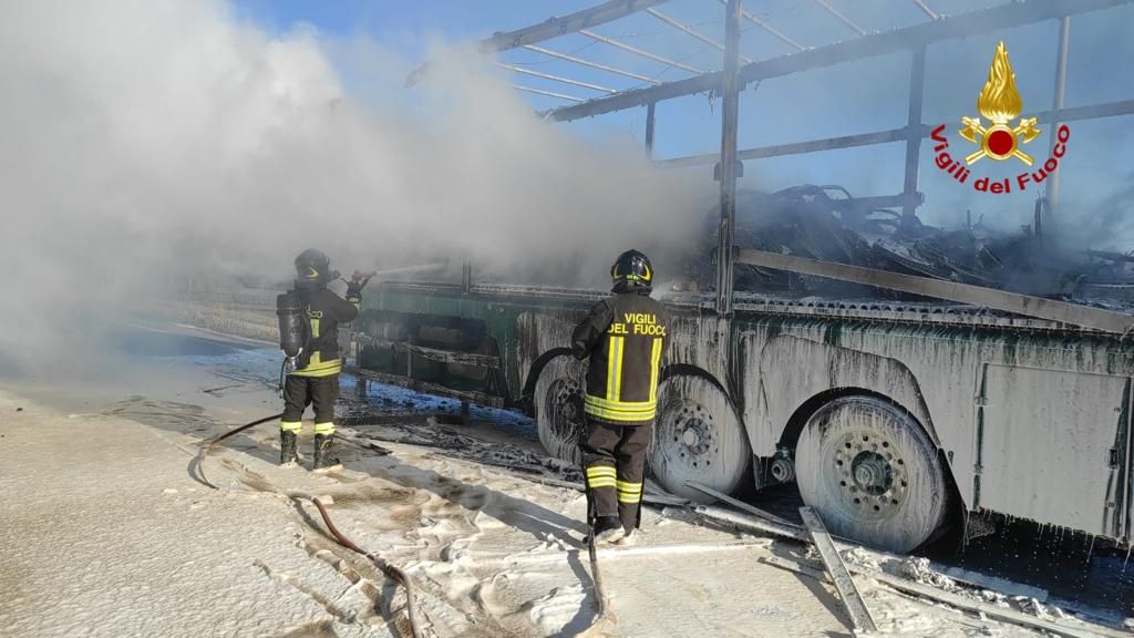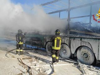 Le fiamme si sono propagate dai sistemi di alimentazione delle biciclette elettriche trasportate sul bilico. Non si segnalano feriti di sorta