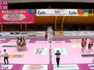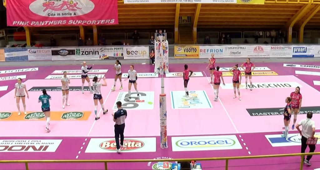 TERZO SET: si riprende con il primo tempo vincente di Beatrice Molinaro. Break delle friulane, che si portano sul 6-4. Per le Pumine, però, arriva rapidamente un contro-break per il 6-8. Sul punteggio di 7-10 arriva il time-out chiesto da Barbieri. Le ragazze di Solforati continuano a tenere alta la guardia e sul 10-15 coach Barbieri è costretto a chiamare il secondo time-out. La Cda recupera due lunghezze. Fast vincente di Montani ed Lpm nuovamente a +5. Padrone di casa che recuperano due punti e inducono coach Solforati a chiamare il time-out. Dopo l’attacco vincente di Populini la Lpm si porta sul 21-16. Sul 19-24 arrivano ben cinque set-point a disposizione delle Pumine. Al terzo tentativo Leah Hardeman mette a terra il punto del definitivo 21-25.