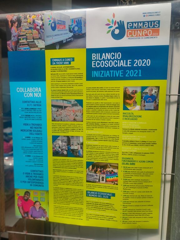 Franco Monnicchi che gestisce l’associazione Emmaus: “Recuperiamo tonnellate di materiale usato e abbiamo un mercatino che ha dei prezzi accessibili a tutti. Dietro c’è la storia di un movimento. È nata grazie ad un campo di volontariato internazionale a Cuneo che ha permesso di creare questa attività. Quello che noi adoperiamo è un’economia circolare. Se si vuole collaborare con noi è di donare, se lo si ha, del materiale usato in buono stato. Si può anche portare nelle nostre due sedi, quella di Boves e quella di Cuneo e per chi vuole, abbiamo bisogno di volontari”. (www.emmauscuneo.it)