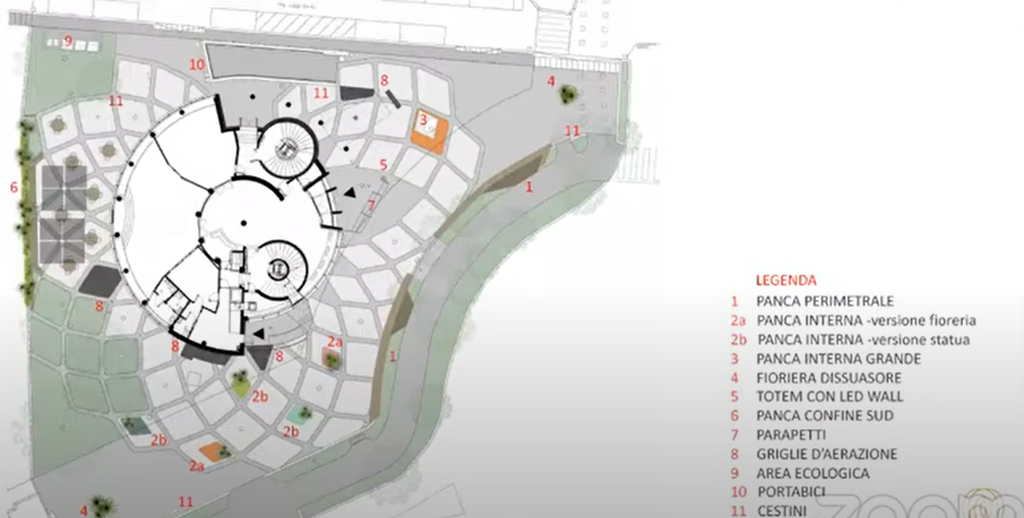 I tecnici della Fondazione in collegamento con i commissari hanno presentato il progetto della piazza pubblica, sottolineando come ben si leghi al grande progetto di ristrutturazione dell'arredo urbano che sta investendo la città e alla "nuova vita pedonalizzata" del viale degli Angeli. "La piazza avrà un arredo particolare e caratteristico fatto di panche, panchine e fioriere che favorirà il raccordo con il viale stesso - hanno detto - , e si è proposto di utilizzare materiali simili a quelli proposti nella via Roma pedonalizzata, con giochi geometrici ben delineati".