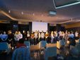 ideatore dell’evento olografico; Yulia Shevchenko, responsabile della comunicazione di Noesis e del progetto Itaca; Gimmi Basilotta, direttore della Compagnia Il Melarancio; Roberto Beccaria, presidente Associazione Culturale Lucas; Enrico Collidà per la Fondazione CRC e l'assessore all'Istruzione del comune di Cuneo Franca Giordano.