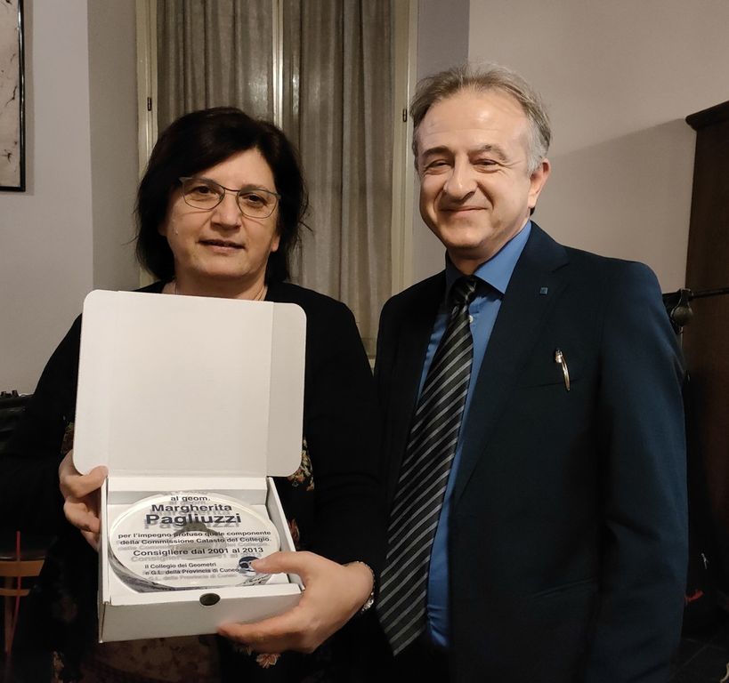 Ieri sera giovedì 16 dicembre, il Collegio Geometri della Provincia di Cuneo ha organizzato una serata di premiazione per i Geometri che hanno nel passato operato nell’ambito delle attività del Collegio, in particolare sono stati consegnate delle targhe ricordo agli Ex Presidenti Giuseppe Lamberti (presidente dal 1995 al 2001), Emilio Dalmasso (presidente dal 2001 al 2005), Piergiuseppe Rinaudo (presidente dal 2005 al 2013), Franco Drocco (presidente dal 2013 al 2017 e dal 2019 al 2021), Livio Spinelli (presidente dal 2017 al 2019 ora Consigliere Nazionale) ed ad alcuni Colleghi già con ruoli di riferimento in Consiglio Direttivo che si sono distinti in attività specifiche: Guido Molineris, Corrado Fino, Margherita Pagliuzzi e Andrea Asselle.