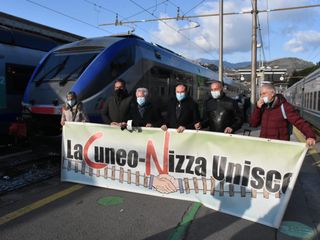 Questa mattina, con un treno partito da Cuneo alle 6.40 e arrivato nella città di confine alle 9.25, si è sancita la riapertura totale della linea Cuneo-Ventimiglia. Per questa prima corsa c'erano 30 passeggeri.