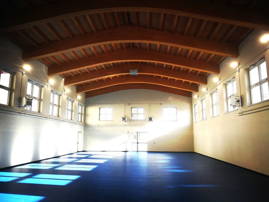 Il soffitto è stato realizzato interamente in legno lamellare e l’impianto di illuminazione ne esalta le peculiarità, rendendo la nuova struttura moderna e molto accogliente. È dotata inoltre di due ampi locali spogliatoio, comprensivi di doccia, ed uno spogliatoio insegnante.