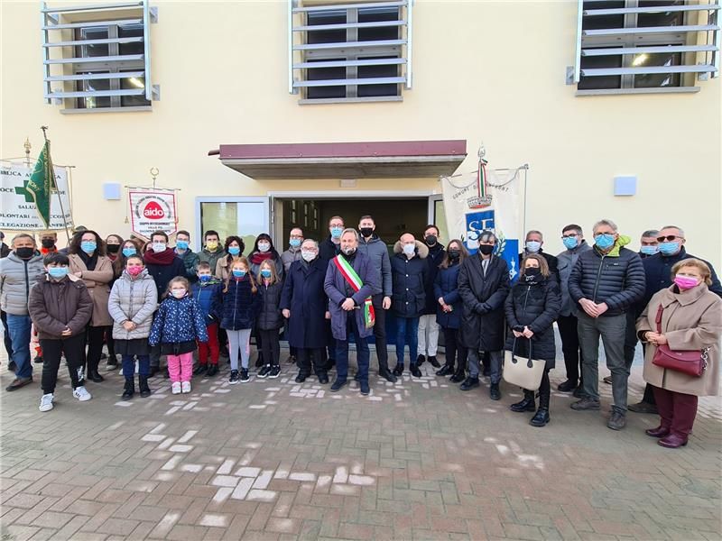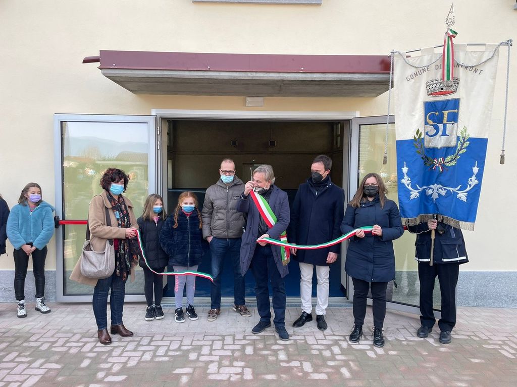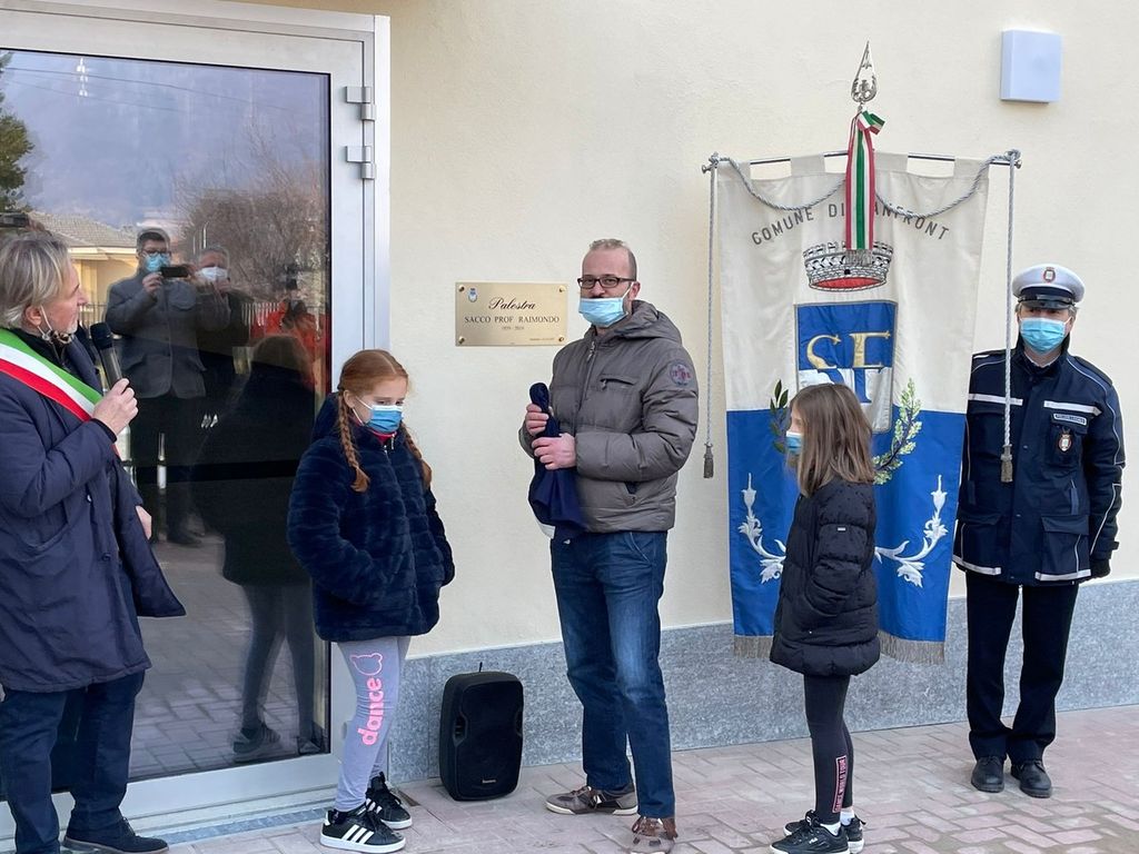 Il sindaco del paese, Emidio Meirone, ha tagliato il nastro della nuova palestra.