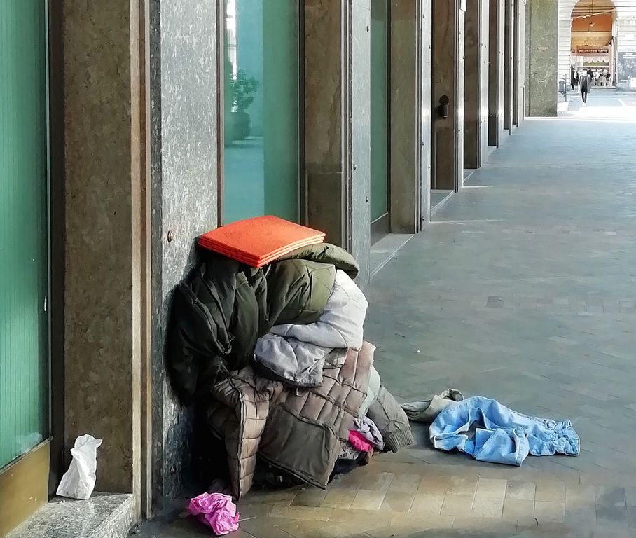 Da molti (troppi) giorni, chi transita sotto i portici di corso Nizza, accanto all'ingresso della sede dell'Amministrazione Provinciale, si trova di fronte ad un corposo fardello di coperte, stracci, bottiglie vuote e altro, tutto apparentemente abbandonato e ogni giorno più voluminoso. Non in un posto qualunque, ma vicino alla porta che immette negli uffici della Provincia e proprio sotto alle bandiere che identificano una sede istituzionale.