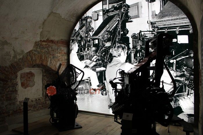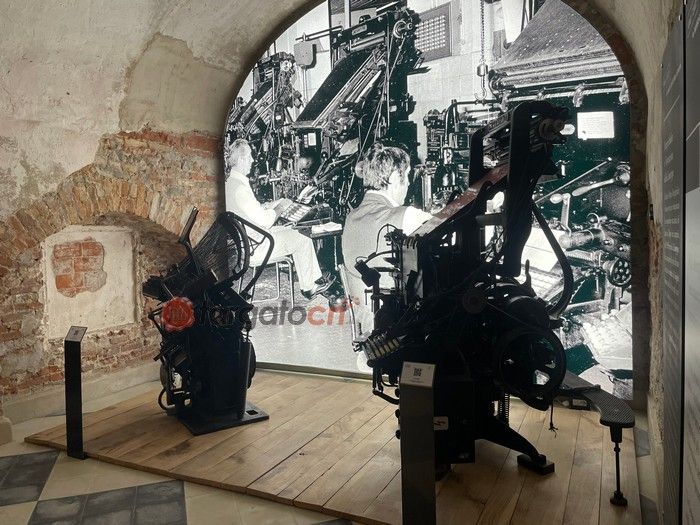 Al piano terra un viaggio attraverso il lavoro tipografo, con i macchinari storici, i torchi, le linotype e i caratteri mobili in piombo: un insieme di suoni, video e pannelli multimediali, scandiscono la storia fino all'invenzione del computer.
