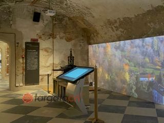 Al piano terra un viaggio attraverso il lavoro tipografo, con i macchinari storici, i torchi, le linotype e i caratteri mobili in piombo: un insieme di suoni, video e pannelli multimediali, scandiscono la storia fino all'invenzione del computer.