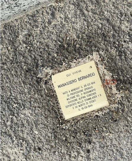 La prima, in via Soresi, dedicata alla memoria di Bernardo Manassero, nato a Mondovì il 25 marzo del 1914. Operaio di professione e militare del 1° reggimento Divisione Alpina Cuneense, venne deportato in Germania, a Stammlager, dove morì di stenti il 19 settembre 1944. La seconda a Piazza, in via Gallo, per Adolfo Vietto, nato a Mondovì il 4 giugno del 1924. Dopo aver abitato prima in via Vico, poi in via Gallo, si traferì a Dogliani. Contadino e militare del 43° reggimento di fanteria divisione Forlì, venne deportato a Dortmund dove morì il 9 giugno 1944.