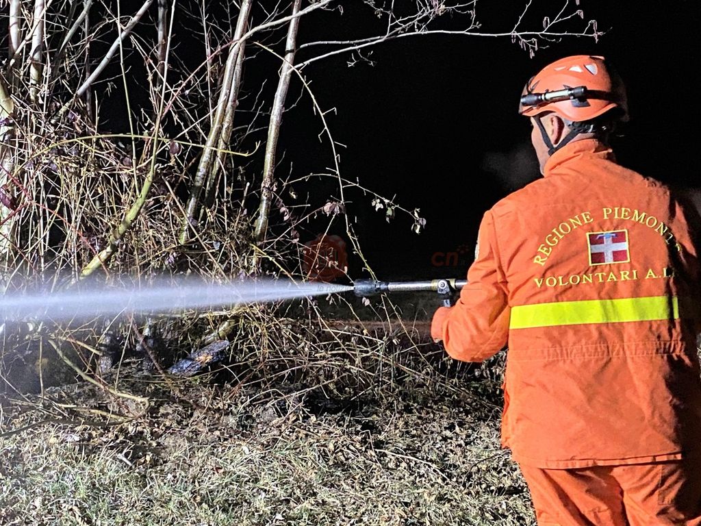 AIB e Vigili del fuoco al lavoro, a Paesana, per un incendio sterpaglie