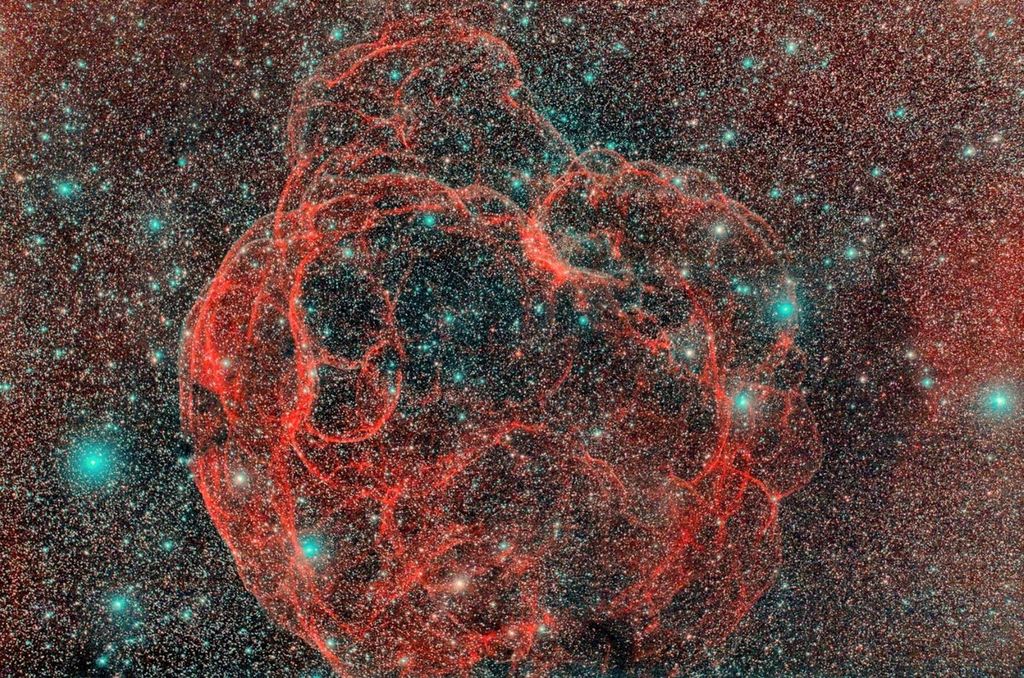 Il telescopio di Paolo Demaria, dedicato all'astrofotografia, ha ripreso per alcune ore il resto di Supernova Simeis 147, anche noto come "Nebulosa Spaghetti", nella costellazione del Toro al confine con l'Auriga: si tratta di ciò che resta dell'esplosione di una stella massiccia avvenuta circa 40.000 anni fa, oggi visibile come un delicato intreccio di filamenti (foto 2).