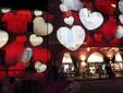 Le facciate dei palazzi storici di Piazza si dipingono con cuori bianchi e rossi per l'arrivo della festa degli innamorati.
