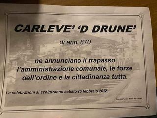 Una decisione valutata in ragione di quello che comunque è ancora un delicato periodo a causa pandemia. Ma la città è famosa per il Carnevale, festa molto sentita e partecipata dalle persone. Così, per le vie del centro, un cartello provocatorio con la scritta: "CARLEVE' 'D DRUNE' di anni 870 ne annunciano il trapasso l'amministrazione comunale, le forze dell'ordine e la cittadinanza tutta".