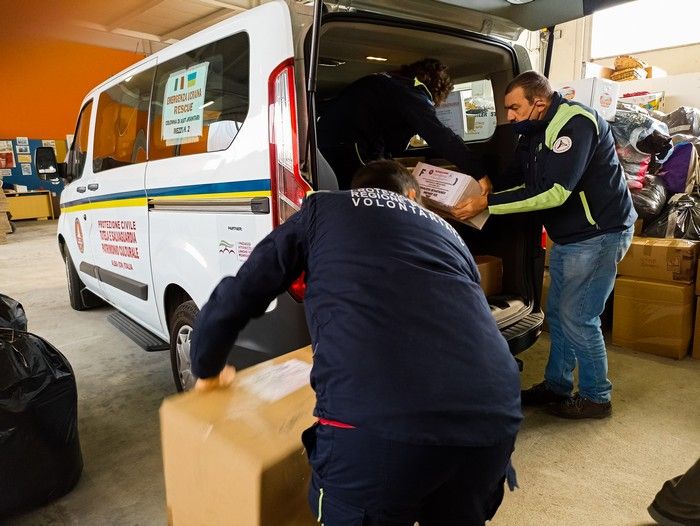 “Noi in questa prima trasferta – spiega Roberto Cerrato di Proteggere Insieme – porteremo aiuti per i bambini, tra cui 1.500 omogeneizzati, pannolini di tutte le misure, poi porteremo disinfettanti, prodotti per l’igiene della persona e medicinali. I medicinali sono stati tutti tracciati e approvati dall’Associazione Farmacisti di Protezione Civile Nazionale, che ha inviato delle infermiere che hanno controllato e diviso per genere ogni scatola ad una ad una, antipiretici, antidolorifici, ma anche 20 bombole di ossigeno da 2L, 40 scatoloni di garze e altri medicinali disinfettanti e per medicazioni, 70.000 siringhe, circa 35 quintali di farmaci pari a un importo di 175.000 euro. Tutto questo è straordinario, perché è il frutto della solidarietà, della tanta solidarietà delle persone e dei nostri concittadini”.