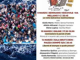Toccante, ma a suo modo corroborante, la serata di apertura di mercoledì 9 marzo presso il seminario vescovile dal titolo ""La rotta balcanica: testimonianze". Dalla viva voce di tre giovani legati con ruoli diversi alla cooperazione internazionale e all'attivismo per i diritti universali, il folto pubblico ha potuto confrontarsi con spaccati di vita, episodi di disperazione e spunti di reazione positiva alle disuguaglianze che accompagnano l'ormai costante spostamento dei migranti dal sud al nord del mediterraneo.