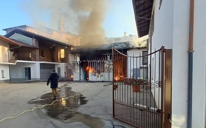 Intervenute le squadre di Barge, Saluzzo e Cuneo con l'ausilio dell'autoscala
