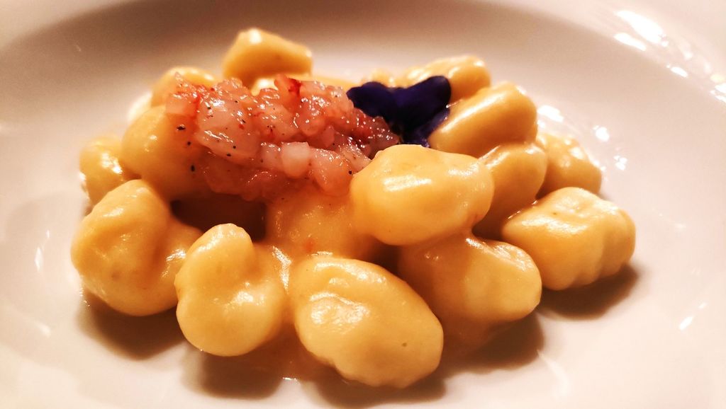 · il trio di capasante, fois gras e gambero rosso con riduzione al Madeira e scaglie di tartufo.