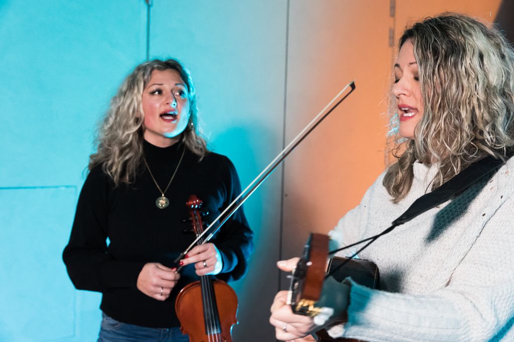 Chi sono. Duo vocale-strumentale formato da chitarra e violino e dalle voci “gemelle” di Olga e Lucrezia Scarsi, le Binele Folk propongono il repertorio tradizionale piemontese nella sua accezione femminile ma anche un variopinto sottobosco di canzoni poco conosciute e riscoperte grazie a melodie tramandate e la ricerca di vecchie registrazioni.