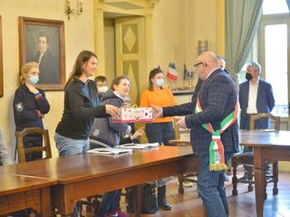 A tutti i presenti è stato consegnato un omaggio da parte del Comune, che comprende, tra le altre cose, un uovo di Pasqua per i bambini e una colomba per ogni famiglia. "La colomba non è solo il dolce della Pasqua – ha ricordato Gatti – ma è un simbolo di pace. Speriamo sia di buon auspicio".