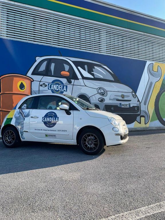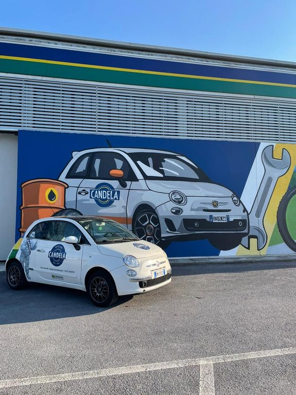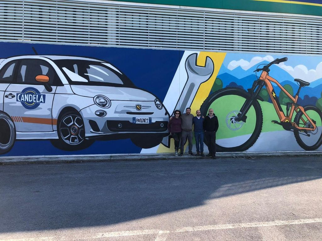 Percorrendo la statale da Cuneo verso Borgo San Dalmazzo è impossibile non vederlo. Un murales di 15 metri per 5 sulla parete del capannone di Candela Gomme che racconta l'identità dell'azienda.