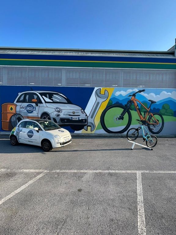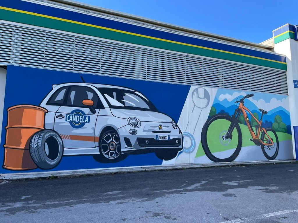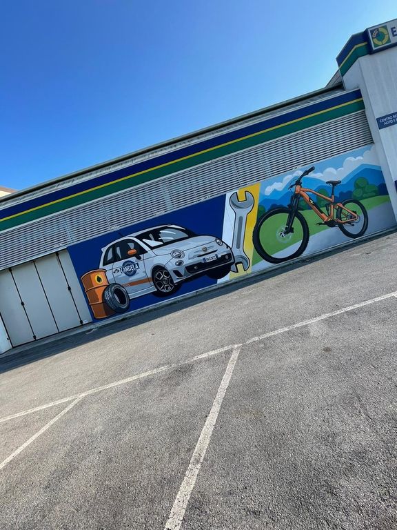 “E' l'artista di strada che più ha lavorato a Cuneo, per questo l'abbiamo scelto - racconta Alessandro Candela, responsabile del punto vendita in via Cuneo 96 a Borgo San Dalmazzo -. È un murales di promozione della nostra attività che racconta la nostra storia e la nostra evoluzione. Da gommisti a centro servizi per la meccanica e ora rivenditori e noleggiatori di bici elettriche con un'attenzione sempre più marcata verso il discorso del Green. Oggi abbiamo la pannellatura solare sul tetto. Lo abbiamo fatto anche come regalo alla città e agli automobilisti che transitano sulla statale, arteria principale verso la Francia. Meglio vedere un bel murales che una parete bianca e spoglia!”