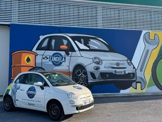 Percorrendo la statale da Cuneo verso Borgo San Dalmazzo è impossibile non vederlo. Un murales di 15 metri per 5 sulla parete del capannone di Candela Gomme che racconta l'identità dell'azienda.