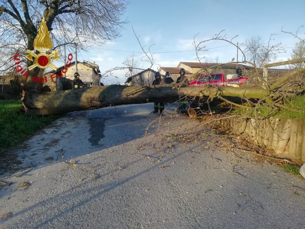 Intervento dei Vigili del Fuoco questa mattina, venerdì 8 aprile, per la caduta di un albero di fronte al monastero cistercense di Santa Maria della Carità a Pogliola, frazione del comune di Mondovì.