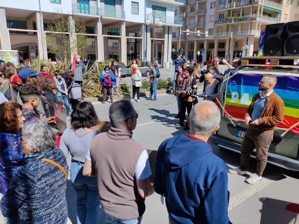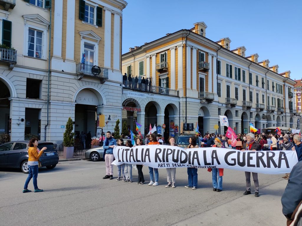 Partenza e qualche tappa per ricordare i numeri delle vittime delle ultime 30 guerre nel mondo, in piazza Europa e poi in corso Dante. Uno stop anche in piazza Galimberti, dove c'è stato un minuto di silenzio e dove gli scout hanno distribuito dei foglietti con le parole da cancellare e non usare più. Parole di violenza e morte.