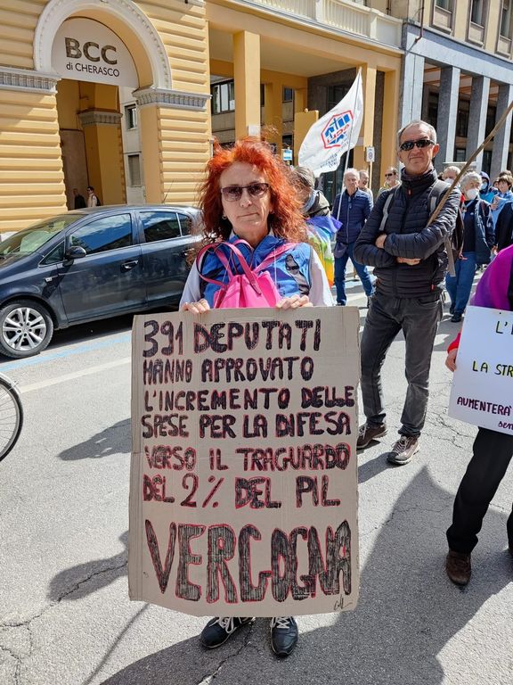 Una grande manifestazione provinciale, con decine e decine di associazioni coinvolte, dalle Acli all'ANPI agli Scout a Telefono Donna. Centinaia di persone in corteo (almeno 1000 per gli organizzatori, circa 600 per la Questura), dalla stazione ferroviaria al parco della Resistenza, tappa finale della marcia per la PACE a Cuneo.