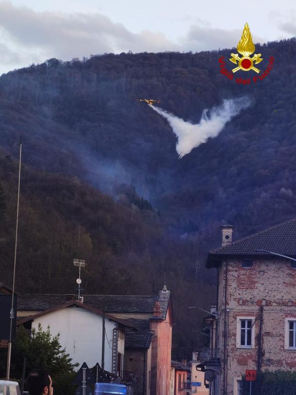 Vigili del fuoco e Aib ancora al lavoro sull'incendio boschivo in frazione Vallera di Caraglio
