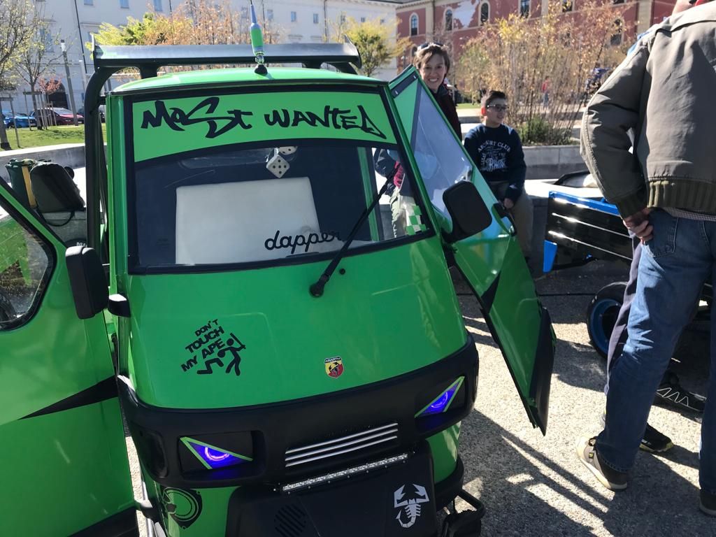 Tra i veicoli esposti degni di nota diversi esemplari “Pentarò”, l’Ape in versione bilico a 5 ruote, Curiosità desteranno tutte le versioni di Ape 50 personalizzate tra le quali, direttamente da Codroipo, l’Ape 50 Tricolore con la quale il proprietario ha voluto celebrare la conterranea pattuglia acrobatica delle “Frecce”.