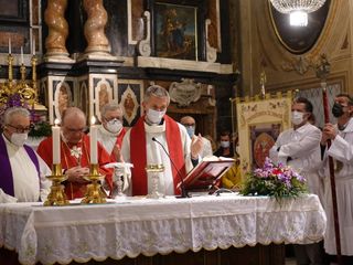Subito nelle strade della città sono risuonate, cariche di spiritualità, le note di canti e preghiere, recitate dal popolo di fedeli, che ha unito i propri passi a quelli delle autorità religiose, civili e militari, con in testa il sindaco, Gianni Fogliato. Dopo aver percorso il circuito cittadino, ecco il ritorno nella chiesa di San Giovanni Battista Decollato, epicentro della liturgia eucaristica presieduta dal vescovo di Alba, monsignor Marco Brunetti, coadiuvato dal clero locale.