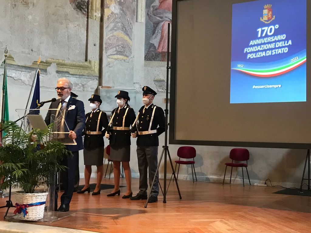 In Sala San Giovanni, a Cuneo, la cerimonia torna in presenza dopo due anni. Si è celebrata oggi la festa per i 170 anni di fondazione della Polizia di Stato.
