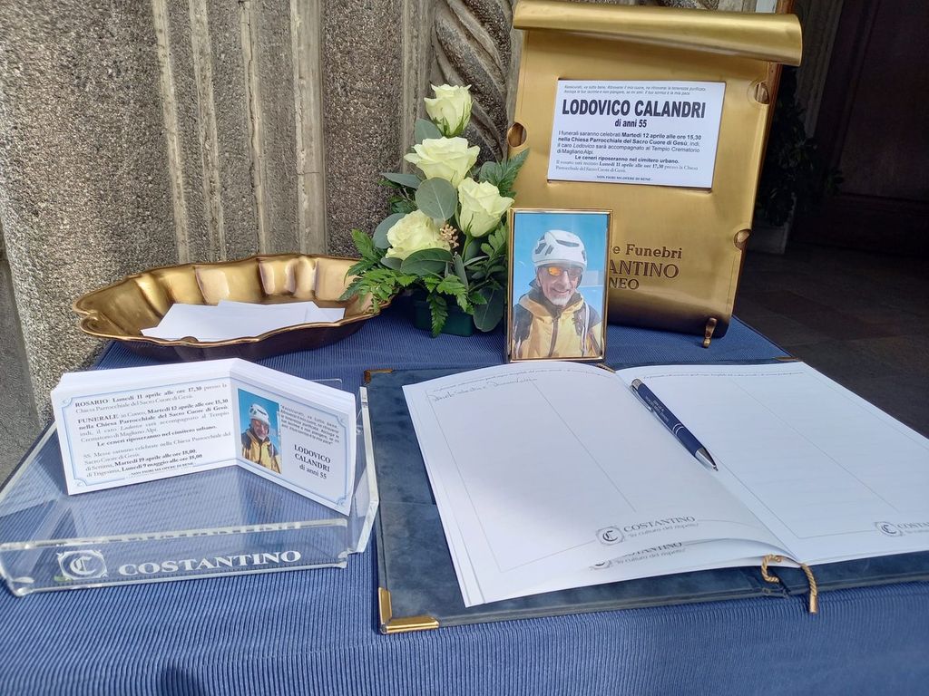 Letteralmente gremiti la chiesa, il piazzale antistante e addirittura una porzione di corso Nizza: presenti la moglie Claudia e la figlia Elisa, la mamma Caterina, il papà Giovanni e il fratello Franco, ma anche tanti amici e compagni di scuola della figlia, e i colleghi. Grande appassionato di sport, oltre allo scialpinismo Calandri era ciclista e judoka, come parte della società Kodokan di Cuneo. Alla "Olimac" lavorava nel reparto di piegatura, e aveva un passato come consulente finanziario e agente immobiliare.