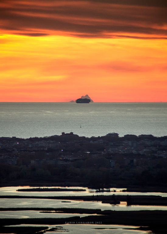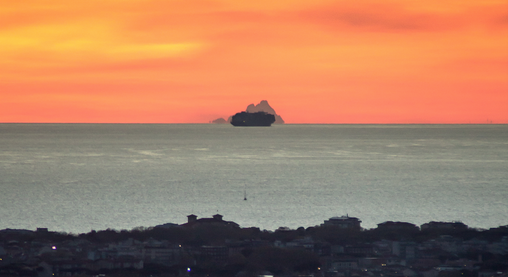 Questa volta la visuale è 'disturbata' da una nave da crociera, ma ciò nulla toglie alla bellezza dello scatto realizzato al tramonto dopo giorni di vento che hanno pulito il cielo dalle nuvole.