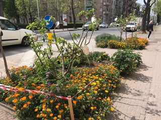 Ora le aiuole abbellite sono cinque; sono stati piantati fiori e anche qualche albero da frutto, un pesco e un ciliegio, oltre che qualche erba aromatica. Tra qualche settimana saranno tutte fiorite e al massimo dello splendore.