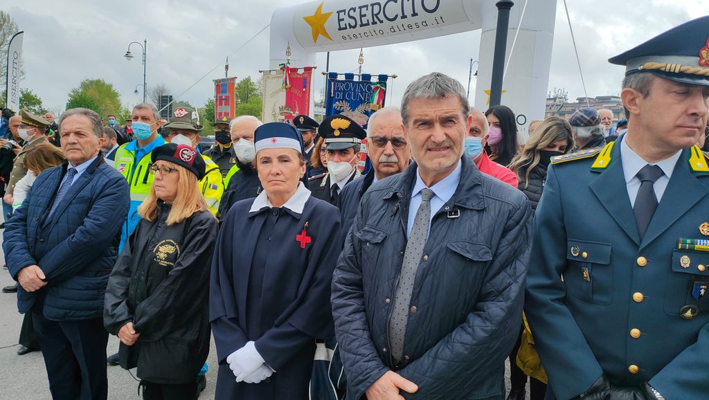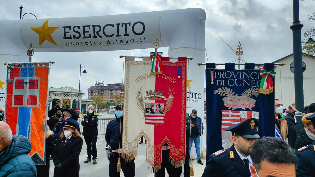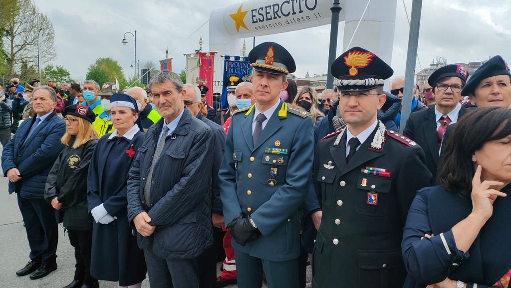 Erano presenti il Sottosegretario di Stato alla Difesa Giorgio Mulè, il presidente della Regione Piemonte Alberto Cirio, il sindaco di Cuneo e presidente della Provincia Federico Borgna, il Prefetto Fabrizia Triolo, il Gen. C.A. Luciano Portolano (Segretario Generale della Difesa e Direttore Nazionale degli Armamenti), il Gen. B. Nicola Piasente (Comandante della Brigata Alpina Taurinense), il vescovo emerito di Saluzzo Mons. Giuseppe Guerrini, il Generale Nunzio Paulucci (Vice Presidente Associazione Nazionale Bersaglieri) e il presidente del Comitato Organizzatore Raduno Bersaglieri di Cuneo Guido Galavotti.